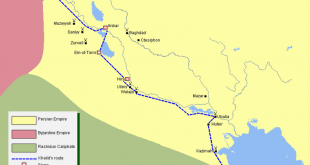 نقشهٔ جنگهای خالد بن ولید در سواد (عراق). برای بهتر دیدن محل جنگ قادسیه بر روی تصویر کلیک کنید. جنگ «قادسیه» یکی از مهمترین جنگهایی است که بین اعراب مسلمان و سپاه ایران اتفاق افتاده است.این نبرد در ۱۴ هجری قمری (۶۳۵ میلادی) بین سپاه ایران و اعراب مسلمان در …